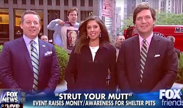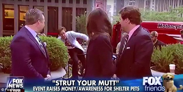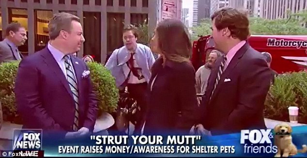 황당한 사고는 보수 논객으로 유명한 터커 칼슨 등 3명의 호스트가 생방송을 진행하던 중 일어났다. 3명의 진행자 뒤로 말끔한 양복을 차려입은 한 남자가 나타나 불쑥 셔츠를 풀어헤치고는 안에 입고있던 티셔츠를 노출한 것.