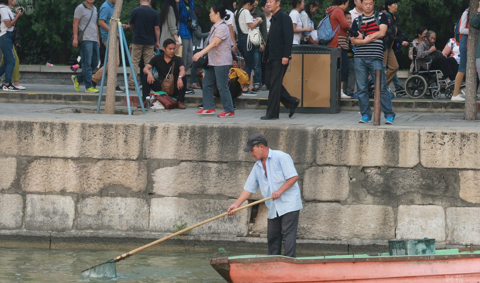 쿤밍호에는 매일 크고 작은 배 300여 척이 관광객들을 태우고 유람한다. 관광객들이 많아질수록 이곳 청소부들의 업무량 또한 만만치 않다. 2일 하루 이허위안을 찾은 관광객 수는 12만 명에 달했다.