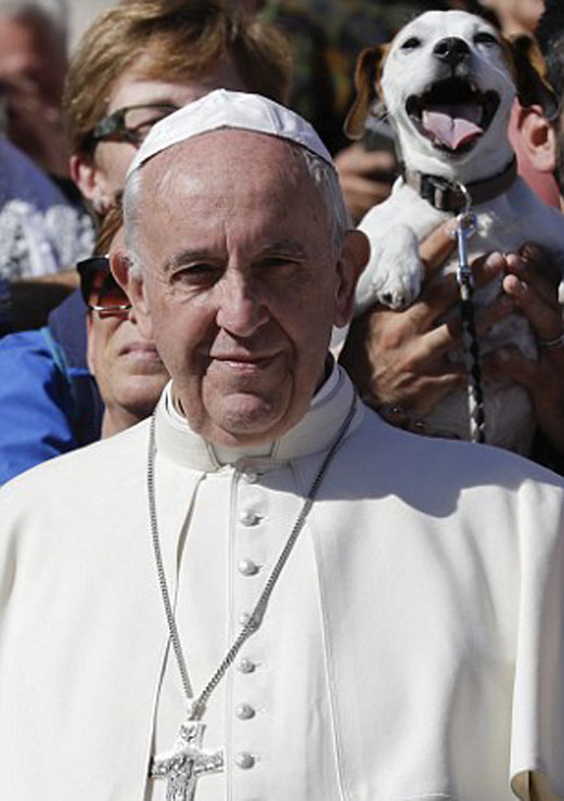 미국 타임 등 해외언론은 "환하게 웃는 개 한마리가 교황을 포토밤했다"면서 "세계에서 가장 축복받은 개"라고 촌평.
