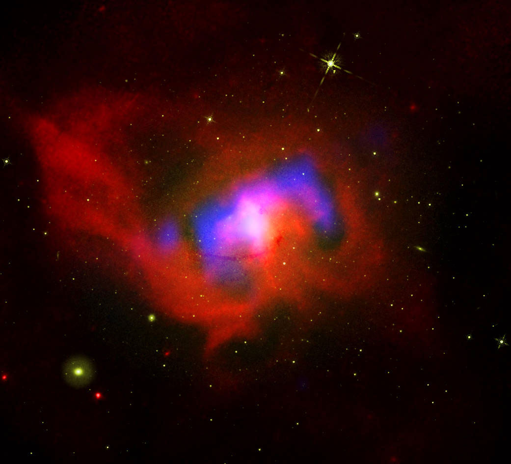 사진에서 붉은색으로 보이는 것은 찬드라 X선 위성이 관측한 뜨거운 가스로 부정맥과 같은 불규칙한 가스 방출로 인해 왼쪽에 거품 같은 구조가 보인다. 파란색은 칼 G. 잔스키 전파 망원경 관측 결과로 블랙홀 주변의 고에너지 입자의 분포다.