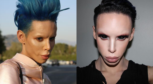 그는 17살에 입술 필러를 시작으로 두 차례 코 성형술, 볼과 눈썹 뼈 삽입술 등 총 110번이 넘는 성형 수술을 받았다. 그가 줄기차게 수술대 위에 오르는 이유는 영화에나 등장하는 외계 생물체의 모습이 되고싶다는 욕망 때문.
