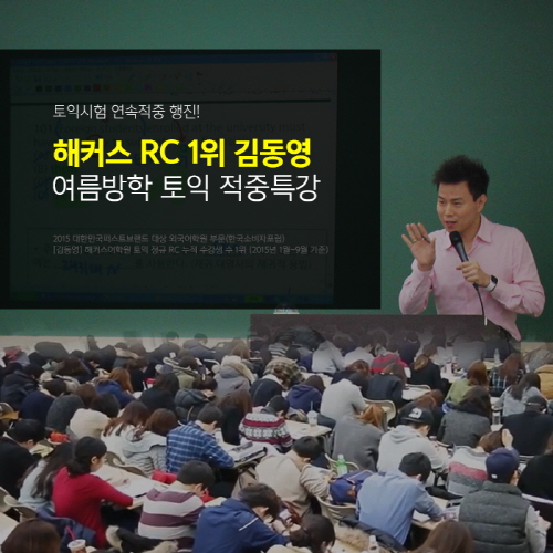 토익 시험일을 1주일 남겨두고 오는 17일 해커스어학원 강남역캠퍼스 1별관에서는 ‘김동영 토익 적중특강’이 진행된다. 해당 특강은 지난 5월 토익 LC 한승태 강사의 특강을 이어받는 릴레이 적중특강으로, 실제 토익 시험에서도 26차례나 연속 적중한 바 있어 크게 화제가 되고 있다.