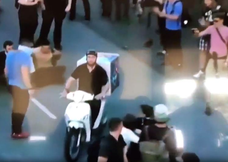 그러나 한 배달의 기수에게 전쟁터같은 시위 현장은 문제가 되지 않았다. 신원이 공개되지 않은 이 피자 배달부는 혼잡한 시위대 사이를 오토바이를 타고 헤치며 목적지로 나아갔다. 이에 일부 시위대 사이에서 휘파람과 박수가 터져나올 정도.
