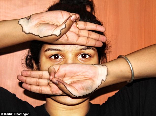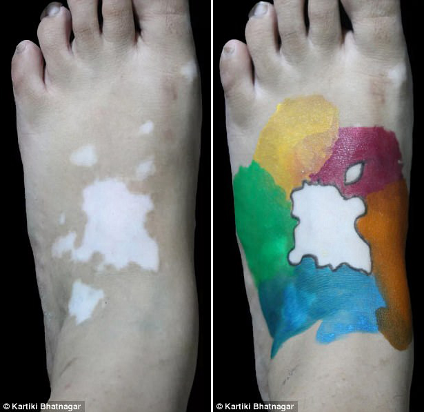 2일(현지시간) 미국 인터넷 뉴스매체 버즈피드는 인도 뉴델리 출신의 카르티키 바트나가르(17)가 피부에 난 백색 반점에 기발한 디자인과 여러가지 빛깔을 더해 오랫동안 자신을 괴롭혀온 ‘백반증’ 컴플렉스를 극복했다고 전했다.