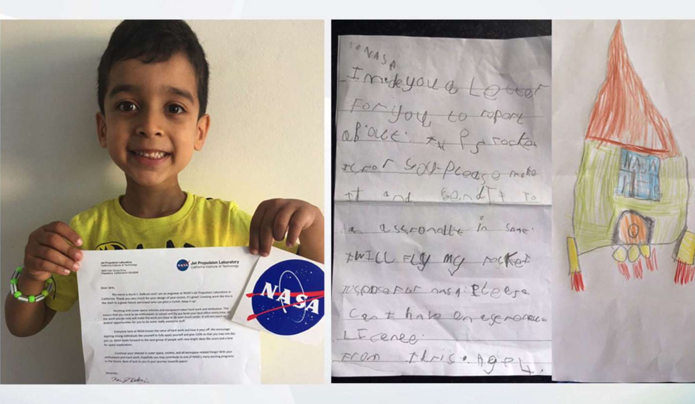 소년은 편지에서 “NASA에게, 난 당신들에게 보고하려고 편지를 쓴다. 이 로켓은 당신들을 위한 것”이라면서 “이걸 만들어 거기에 우주 비행사를 태워 우주로 보내달라”고 썼다.