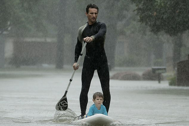 이 사진은 어린 소년을 보드에 태운 채 홍수가 난 동네를 벗어나는 남자의 모습을 담고 있어 이번 허리케인의 피해가 얼마나 큰 지를 단적으로 보여줬다.