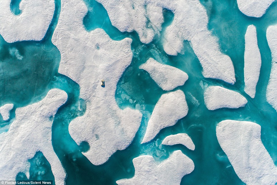 사진을 찍은 리덕스는 “북극곰을 찍기 위해 매일 많은 시간을 투자했다. 간신히 드론을 이용해 북극곰 한 마리를 포착했는데, 북극곰이 얼음과 얼음 사이를 건너기 위해 애쓰는 모습을 보자마자 눈물이 쏟아져 나왔다”고 당시 소감을 밝혔다.