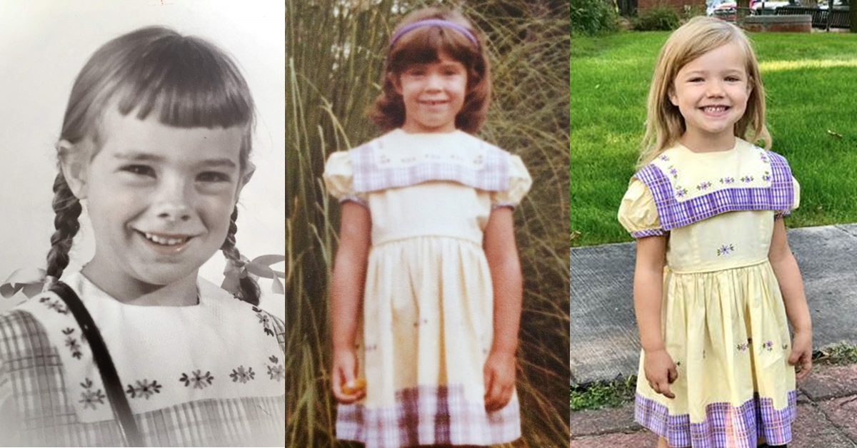 8일(현지시간) 미국 NBC에 따르면, 이달 초 미국 콜로라도주 두랑고에 사는 캐롤라인은 유치원에 입학했다. 모든 것이 낯설고 새로웠지만 캐롤라인이 입을 옷만큼은 수십 년 전부터 미리 정해져 있었다. 바로 엄마 제니 허트가 등교 첫 날 입었던 보라색과 노란색의 원피스.