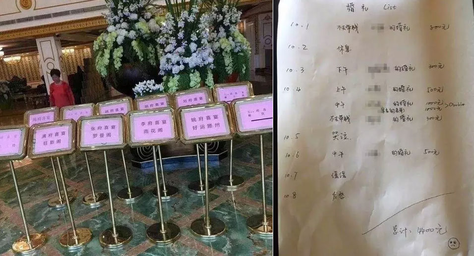실제로 온라인상에 등장한 한 네티즌은 이번 휴일 동안 자신이 지출한 축의금 명세서를 첨부, 휴일이 시작된 1일부터 8일까지 매일 한 차례씩 진행된 결혼식 축의금으로 총 4400위안(약 88만 원)을 지출했다고 토로했다.