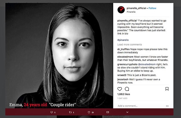 이런 피나렐로가 최근 출시한 전동 자전거 광고 포스터에는 ‘엠마’라는 이름의 24세 여성이 등장한다. 여기에는 “난 언제나 남자친구와 함께 사이클링을 가고 싶었지만 그것은 불가능한 일이었다. 하지만 이제는 가능해 질 것”이라는 문구가 함께 적혀 있다.