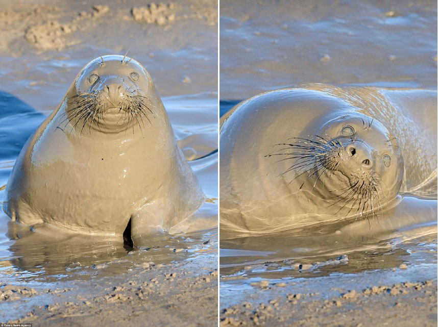 예뻐지고 싶은 욕망은 인간만의 것이 아닌 듯싶다. 귀여운 물범 한 마리가 머드팩을 하듯 진흙 목욕을 즐기는 보기 드문 순간이 카메라에 포착됐다.
