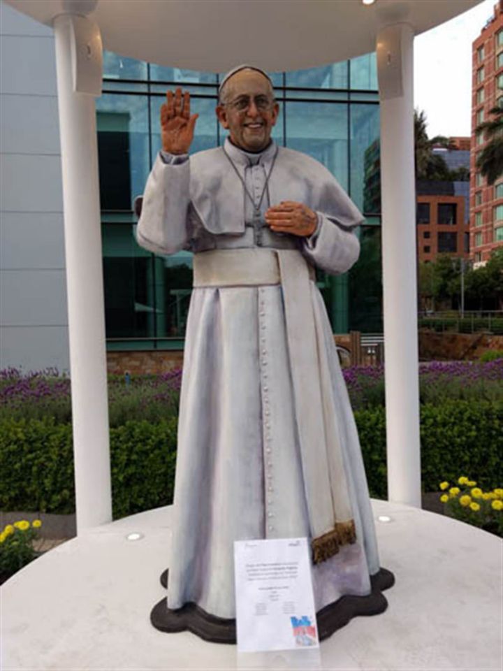 교황의 첫 방문을 기념하는 한편 그를 직접 만나지 못하는 시민들을 위해 아르헨티나의 조각예술가 페르난도 푸글리에세에게 의뢰해 특별히 제작한 인형이다. 푸글리에세는 프란치스코 교황과 수십 년째 친분을 맺고 있는 예술가다.