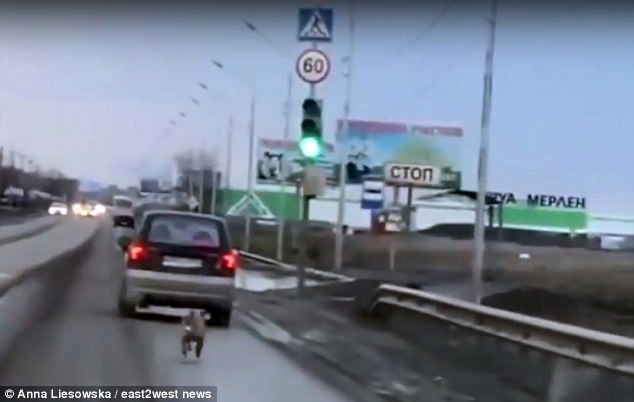 8일(현지시간) 영국 일간 데일리메일은 러시아 로스토프나도누의 한 도로변에 버려진 개 딩카가 자동차를 붙잡기 위해 몇 마일을 따라 달리는 영상을 공개했다.