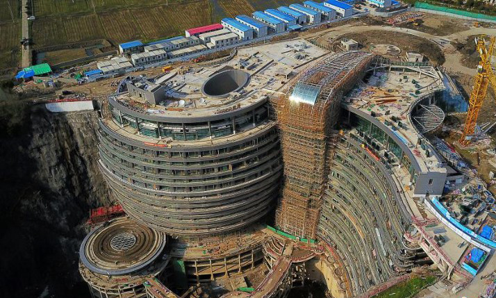 상하이 시마오부동산 그룹이 야심차게 개발 중인 이 호텔의 이름은 시마오 원더랜드 인터콘티넨탈 호텔로 이미 6년 간이나 건설이 진행돼왔다. 호텔 건설 발표 때 부터 세계적인 관심을 모은 이유는 버려진 채석장을 활용했기 때문. 이는 발상의 전환이 가져온 결실이다.