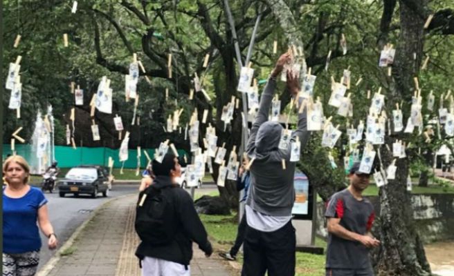 전날인 2일엔 보고타의 엘비레이 공원의 한 나무메 지폐열매가 맺혔다. 칼리의 테르툴리아박물관 주변에서도 지폐가 열매처럼 주렁주렁 달린 가로수가 목격됐다. 물론 진짜로 나무가 지폐 열매를 맺은 건 아니다. 누군가 집게와 실로 지폐를 열매처럼 달아놓은 것이다.