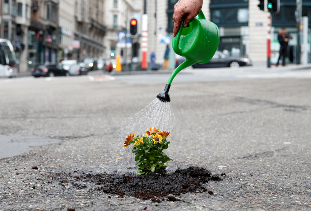 바로 열악한 도로 사정이다. 도로와 인도 등 곳곳에 구멍이 많아 운전자와 보행자의 안전에 악영향을 미친다는 것. 안톤은 "많은 시민들이 도로에 난 구멍때문에 고통을 느낄 정도"라면서 "이같은 상황을 알리고자 구멍난 곳에 꽃을 심기 시작했다"고 밝혔다.