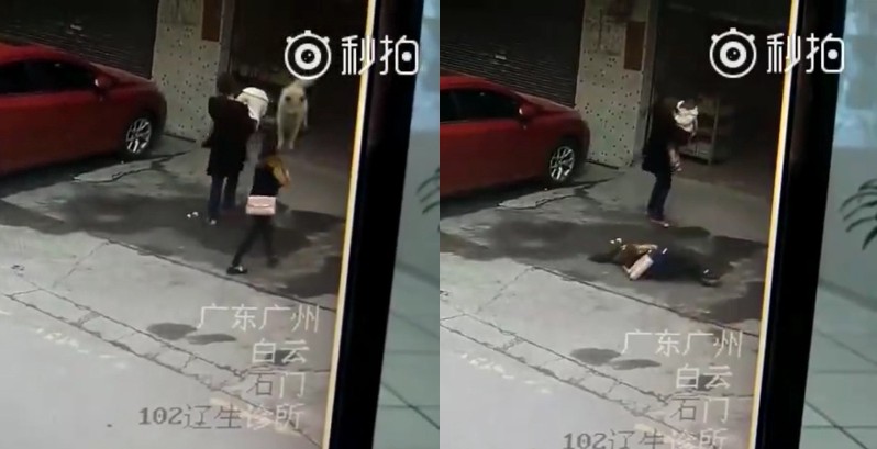 지난 26일 중국 영자매체 상하이스트 등 현지언론은 광저우 바이윈 구에서 벌어진 사고 소식을 일제히 전했다. 사고가 벌어진 것은 지난 15일. 이날 신원이 공개되지 않은 한 여성은 아기를 안은 동료 여성과 건물 밖을 걸어나가다 갑자기 위에서 떨어진 개와 그대로 부딪쳐 의식을 잃고 쓰러졌다.