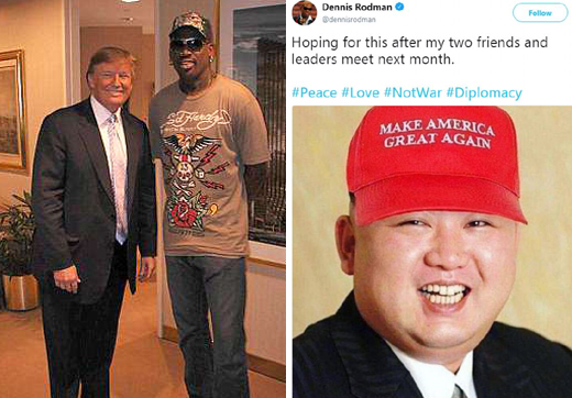 이에앞서 지난 8일에도 로드맨은 북미정상회담 소식을 크게 반겼다. 로드맨은 "트럼프는 이제 그 어떤 대통령도 하지 못한 역사적 만남으로 가는 길에 있다. 잘한 일"이라고 밝혔다.