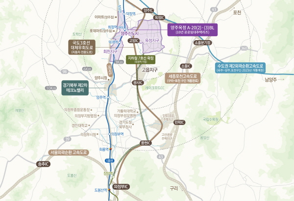 지난해 기본계획 승인 고시된 지하철 7호선 도봉산~양주 옥정구간 연장사업이 이르면 올해 착공에 들어가 2024년경 개통될 예정으로 지하철이 뚫리면 옥정역(예정)에서 강남구청역까지 50분 만에 이동할 수 있다. 강남출퇴근 수요 역시 집값이 저렴한 양주신도시를 찾게 될 가능성이 높다.