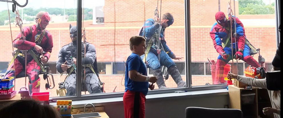 사실 이들 슈퍼히어로는 창문 청소업체 ‘래리스 윈도우 서비시스’의 직원들이다. 이들은 지난 몇년 동안 이 병원에서 진행하는 행사마다 이런 슈퍼히어로 복장 차림으로 나타나 창문을 닦고 있는 것이다.