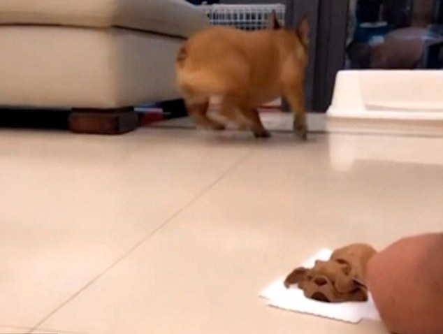 불독이 케이크의 정체가 무엇인지 판단하려는 순간, 주인은 갑자기 숟가락으로 케이크를 잘랐다. 이 상황을 예상하지 못한 불독은 섬뜩함에 깜짝 놀라 경기를 일으켰고, 마루 밖으로 달아났다.