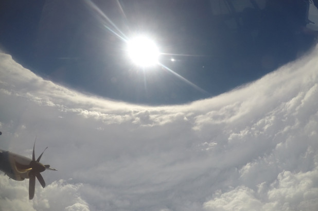 재앙 수준의 위력을 가진 허리케인 도리안이 바하마에 이어 미국을 강타한 가운데, 도리안의 ‘태풍의 눈’에서 촬영했다는 사진이 공개됐다.