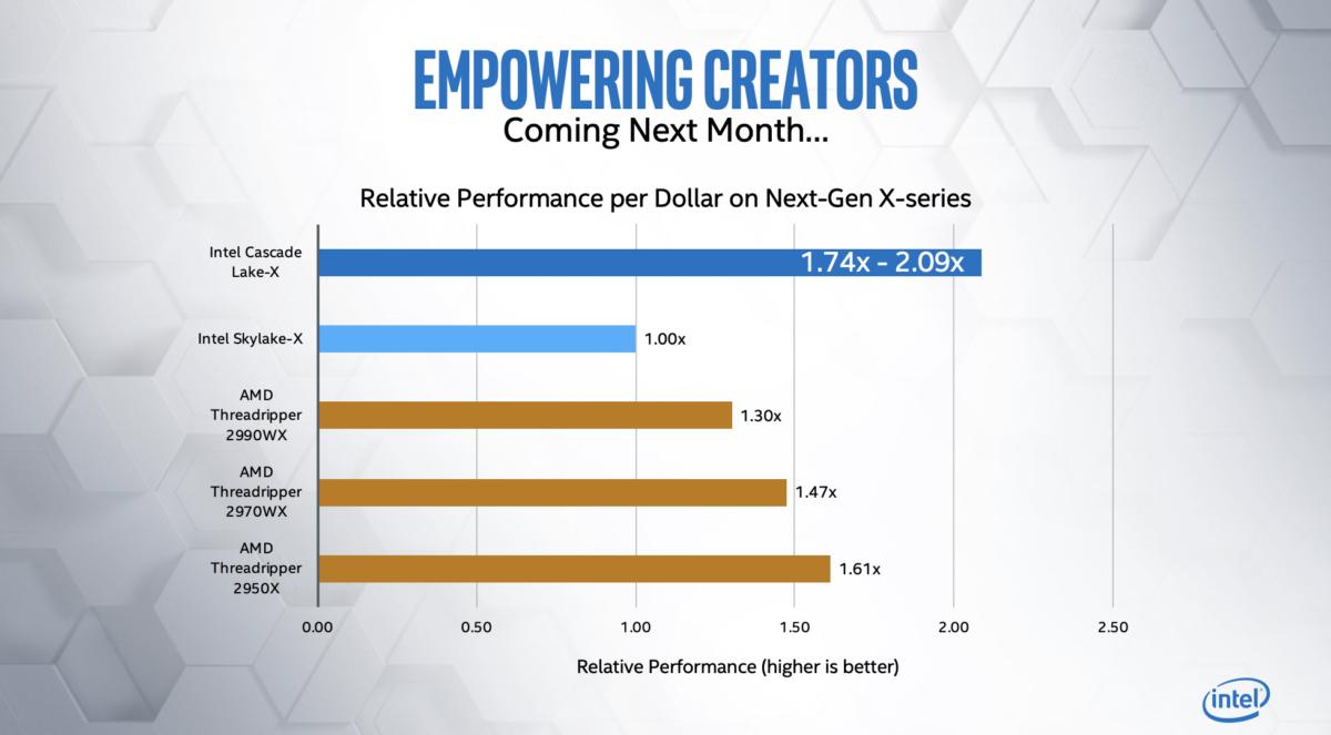 인텔은 2017년 일반 데스크톱과 서버 시장의 중간에 있는 고성능 PC 시장을 위해 스카이레이크 X 시리즈를 출시했습니다. 18코어까지 코어 숫자를 늘린 것까지는 좋은데 가격대 성능비가 경쟁자인 스레드리퍼에 미치지 못했습니다. 이 난국을 타개하기 위해 최근 인텔은 캐스케이드레이크 X를 투입하겠다고 발표했습니다. 구체적인 제품군은 공개하지 않았지만, 스카이레이크 X나 스레드리퍼 2000 시리즈 대비 가격 대 성능비가 높다고 합니다. 코어 당 성능은 크게 변화 없겠지만, 코어 숫자를 높이고 가격은 낮춘 모델로 생각됩니다.