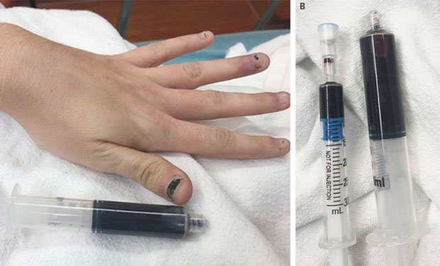 최근 25세 여성 환자는 치통 때문에 벤조카인을 복용한 후 호흡곤란과 청색증이 나타났다며 마리암종합병원 응급실을 찾았다. 일단 혈액 검사를 통해 산소포화도를 측정하기로 한 의료진은 채혈과정 중 놀라운 장면과 마주쳤다.