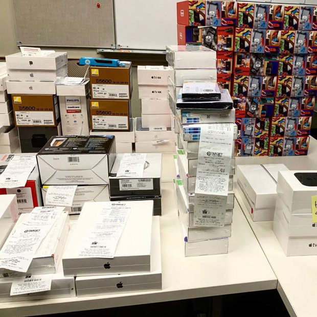 경찰 압수수색 결과 이들의 본거지에서는 90만 달러(약 10억 7400만 원) 상당의 아이패드와 아이워치, 카메라, 기프트카드가 쏟아져 나왔다.
