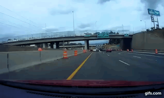 현지언론에 따르면, 지난달 22일(현지시간) 오리건주(州) 포틀랜드 근처를 가로지르는 205번 주간 고속도로에서 한 방송사 카메라맨이 운전 도중 이런 위험한 상황을 겪었지만 가까스로 대형 참사를 피할 수 있었다.