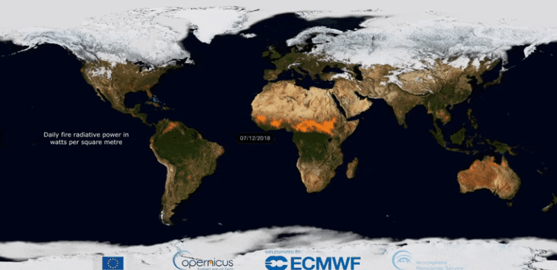 최근 유럽연합(EU) ‘코페르니쿠스 대기 모니터링 서비스‘(CAMS)가 공개한, 올 한 해 지구상에서 얼마나 크고 작은 산불이 자주 발생했는지를 한 눈에 볼 수 있는 그래픽 지도를 보면 이러한 사실을 더욱 확연하게 느낄 수 있다.