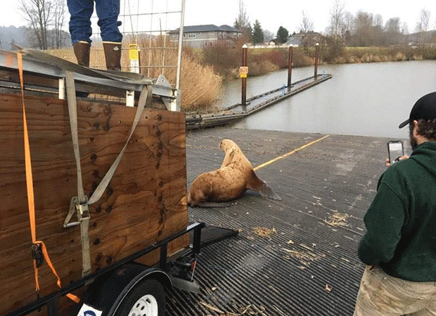 다음날 워싱턴어류야생동물국(WDFW)은 바다사자를 집으로 돌려보낼 운송수단을 마련했다. 바다사자 포획 작전에 동원된 현지 동물단체와 보안관사무소 직원들은 도주로(?)를 차단하고 포위망을 점점 좁혀갔다. 그러나 갑작스러운 상황에 놀란 바다사자가 껑충껑충 뛰어다니며 포효하는 통에 포획에 애를 먹었다. 바다사자를 겨우 우리 안으로 몰아넣은 야생동물국은 건강 상태를 점검한 뒤 인근 컬럼비아강에 풀어주었다.
