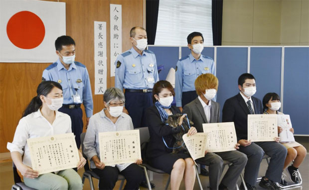 경찰은 위험에 처한 할아버지를 보고 신호를 보낸 고양이 ‘코코’는 물론, 평소와 다른 코코의 행동을 알아챈 할머니, 그리고 함께 힘을 모아 노인을 구한 할머니의 딸과 코코 주인 가족 등 5명에게 지난달 27일 표창장을 수여했다. 코코의 주인 토모코 닛타(56)는 “코코가 발견한 덕에 구조로 이어진 것”이라면서 “이 영광을 코코에게 돌린다”라고 웃어 보였다.