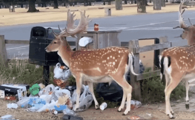 당시 사슴들이 다가간 쓰레기통에는 쓰레기가 넘쳐 흘러있는 상태였다. 공원을 찾은 사람들은 플라스틱에 든 음식이나 음료수를 먹고 마구 버린 것도 모자라, 쓰레기통이 넘치는데도 불구하고 다른 곳에 쓰레기를 버리거나 챙겨갈 생각을 하지 않은 결과였다.