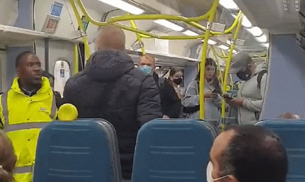 흑인 남성은 계속해서 백인 남성에게 스트레텀 커먼역에서 내리라고 말했다. 이유는 열차 안에서 자신들을 보거나 촬영하고 있는 사람들이 너무 많았기 때문이다. 하지만 백인 남성은 이를 거부하고 흥분을 가라앉히려는지 옆에 있던 빈자리에 앉았다. 하지만 두 남성은 서로 욕하기를 그만두지 않았고 이들은 서로 손가락 욕까지 하며 모욕했다. 흑인 남성은 격분해 백인 남성의 손을 발로 걷어차며 일어나라고 재촉했지만 백인 남성은 도리어 상대를 조롱했다.