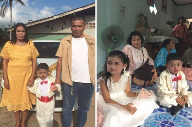 지난 4일 니콘시탐마랏주의 한 가정집에서 5살 쌍둥이 남매 와치라윗 비 무시카와 린라다 브림 무시카의 결혼식이 열렸다. 전통혼례로 치러진 이날 결혼식에는 가까운 이웃과 친인척 등이 참석해 쌍둥이의 행복을 빌어주었다.