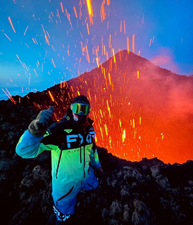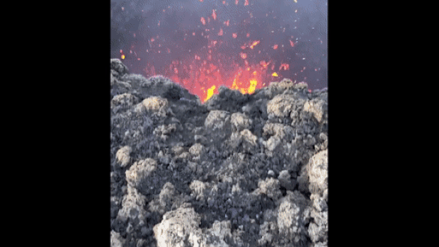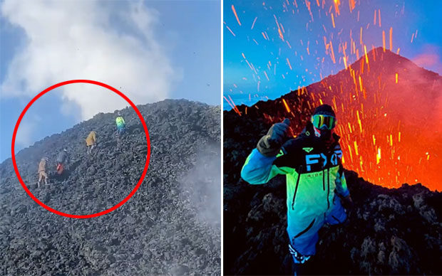 마침내 분화구와 인접한 화산 테두리에 다다른 이들은 분화구에서 솟구치는 시뻘건 ‘용암 폭탄’(화산탄)을 배경으로 셀카 삼매경에 빠졌다. 분화구 안을 들여다보는 대담무쌍함도 보였다. 용암 조각에 프라이팬을 올려놓고 소시지를 구워내며 활화산의 열기를 만끽했다.