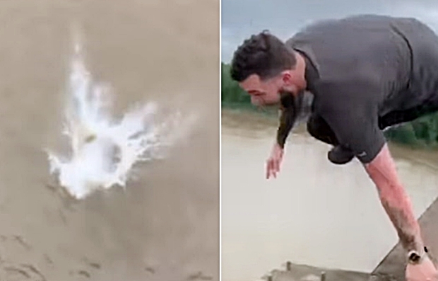 제닝스의 친구와 구경꾼들이 촬영한 영상에는 그가 도로를 가로질러 도움닫기 후 다리 난간을 넘어 강으로 뛰어내리는 모습이 고스란히 담겨 있다. 물보라를 일으키며 강 속 깊이 들어갔다가 곧 수면 위로 올라와 허우적거렸다.