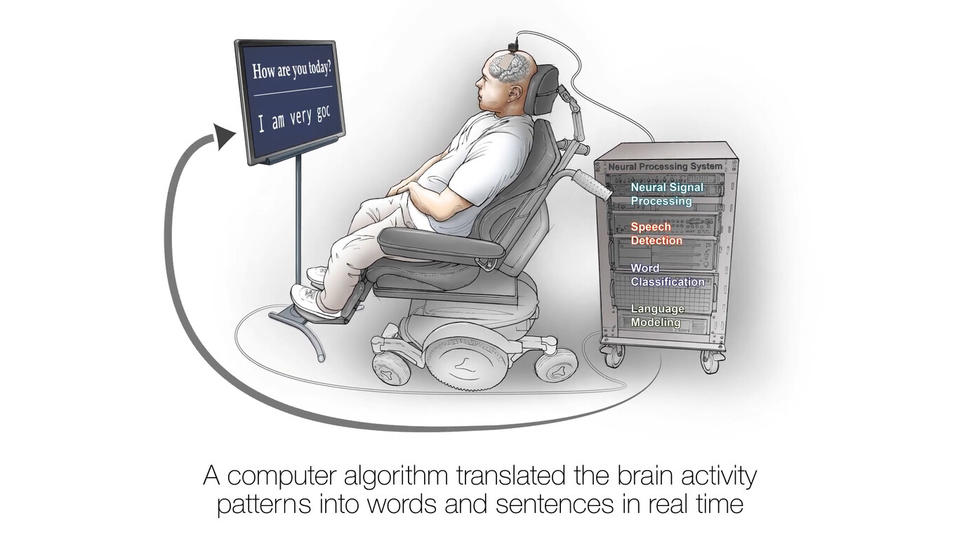 연구진은 뇌졸중으로 마비 증상이 생겨 20세의 젊은 나이부터 말할 수 없게 된 남성 환자의 언어 능력을 관장하는 뇌 부위에 다수의 전극을 부착했다.