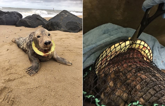 영국 동물보호단체 ‘왕립동물학대방지협회’(RSPCA)가 동물보호단체 ‘프렌즈 오브 호시 실즈’와 함께 2018년 공개했던 사진에는 바다표범이 낚싯줄이나 어망 등 낚시도구에 걸린 모습부터 흔히 프리스비로 불리는 플라스틱 원반에 목이 끼여 제대로 움직이지도 못하고 먹지도 못한 채 점차 죽어가는 모습이 담겨 있었다.