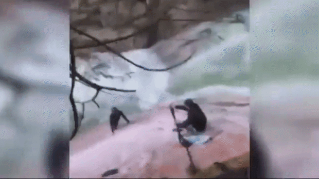 킨다는 “남성 2명이 바위에서 미끄러져 폭포 아래 물웅덩이에 빠졌다. 깎아지른 듯한 절벽 아래 거센 폭포수가 휘몰아치고 있어 그들을 끌어올릴 수 없었다”고 밝혔다. 목격자들이 걸음을 멈추고 응급 구조대에 연락하라고 조언했지만, 휴대전화도 터지지 않는 지역이라 신고는 어려웠다.