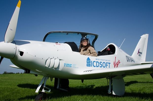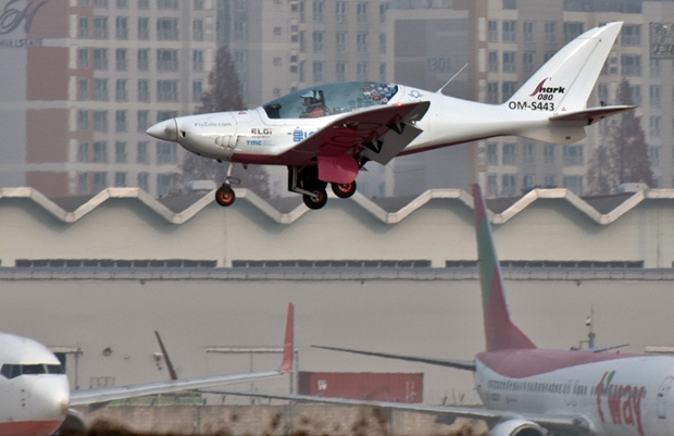▲ 최연소 여성으로서 세계일주 단독비행에 도전 중인 벨기에·영국 국적의 자라 러더포드가 지난 11일 오후 서울 김포공항에 착륙하고 있다./연합뉴스(박준하 씨 제공)