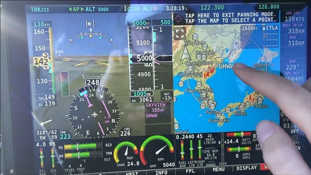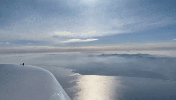 ▲ 한국 영공에 진입하며 러더포드가 촬영한 영상. 러더포드는 “러시아에서 서울까지 약 6시간을 공중에 있었다. 이번 여행에서 가장 긴 비행이었다”고 밝혔다. 이어 “대부분의 비행이 물 위에서 이뤄졌다. 북한을 최대한 피하기 위해 1980m 상공에서 몇 시간을 크게 돌아야 했다”고 설명했다./자라 러더포드 페이스북