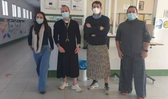 남자교사들은 지난 17일(현지시간)부터 치마를 입고 출근하기 시작했다. 네일까지 예쁜 색으로 칠하고 교단에 서는 남자 교사도 있다.