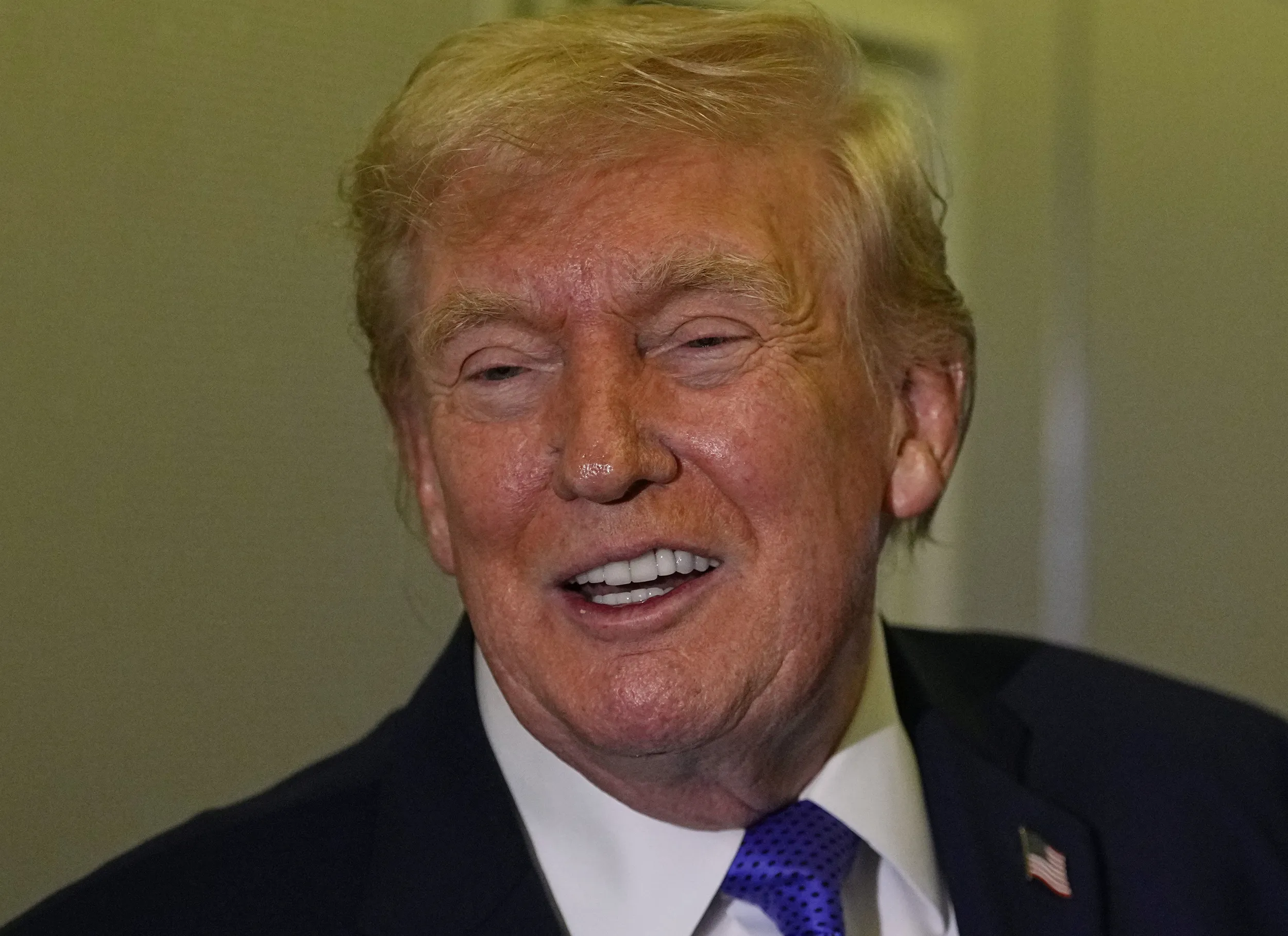 ▲ 도널드 트럼프 미국 대통령이 16일(현지시간) 플로리다 웨스트팜비치에서 워싱턴으로 이동하는 전용기 안에서 취재진과 대화하고 있다. AP 연합뉴스