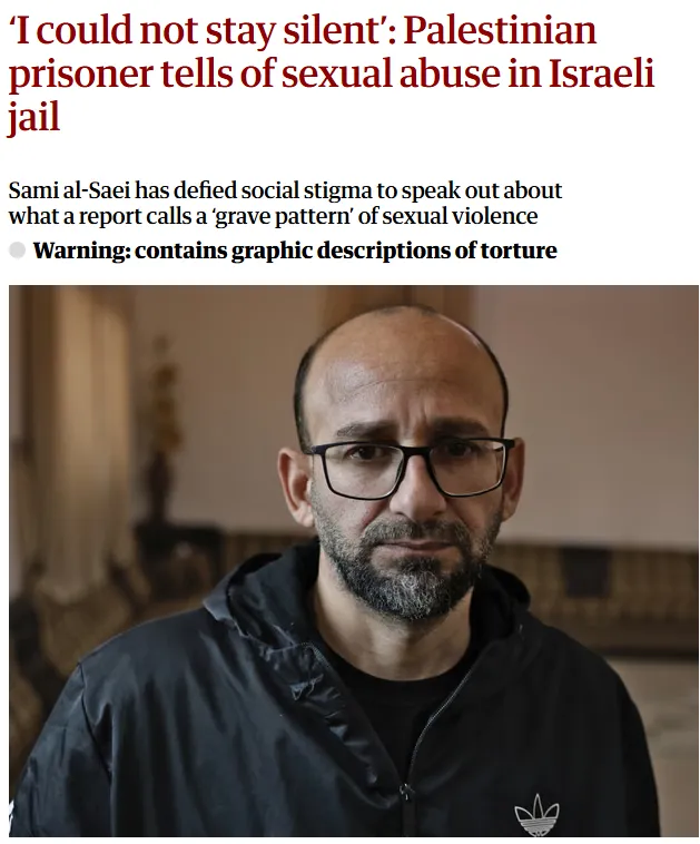 ▲ 2026년 1월 이스라엘군의 성적 가혹 행위를 증언한 팔레스타인 남성. 영국 가디언 보도 캡처