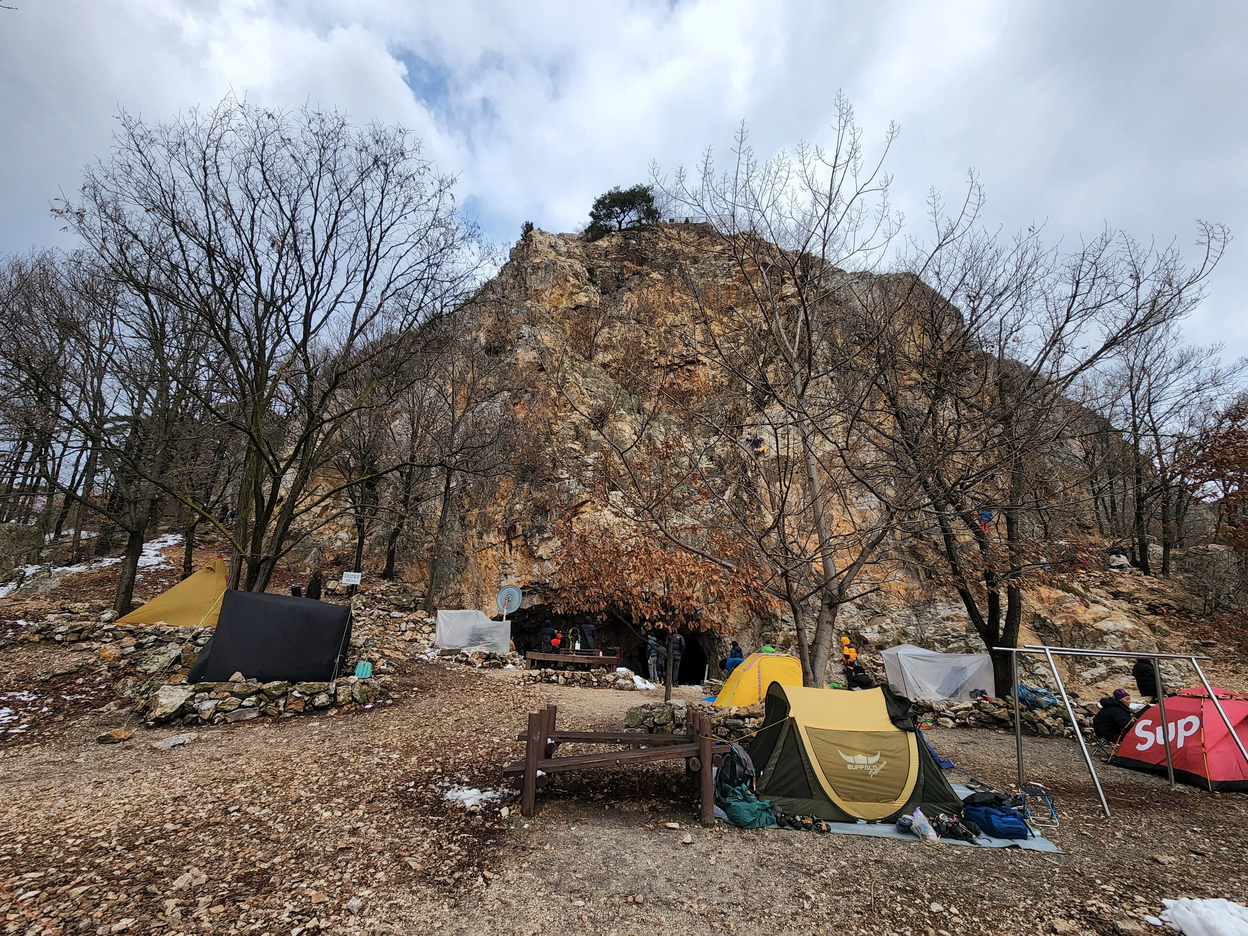 이 산의 또 다른 매력은 바위 지형 속에 숨겨진 작은 동굴이다. 규모는 크지 않지만 자연 침식과 과거 채굴의 흔적이 어우러져 형성된 공간으로, 조비산 특유의 거친 암반 환경을 보여준다. 특히 이 일대는 암벽이 잘 발달해 있어 클라이밍을 즐기는 이들에게도 알려진 장소다. 실제로 주말이면 바위벽을 타는 클라이머들의 모습을 어렵지 않게 볼 수 있으며, 동굴 주변 역시 암벽 등반의 일부 구간으로 활용되기도 한다. 이처럼 조비산은 일반 등산객뿐 아니라 암벽 등반을 즐기는 이들에게도 매력적인 복합 산악 공간으로 기능하고 있다.