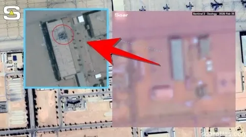함께 공개된 위성사진을 보면 프린스 술탄 공군 기지 건물 지붕에 지난 2월 사진에서는 볼 수 없는 타격 흔적이 선명하다.