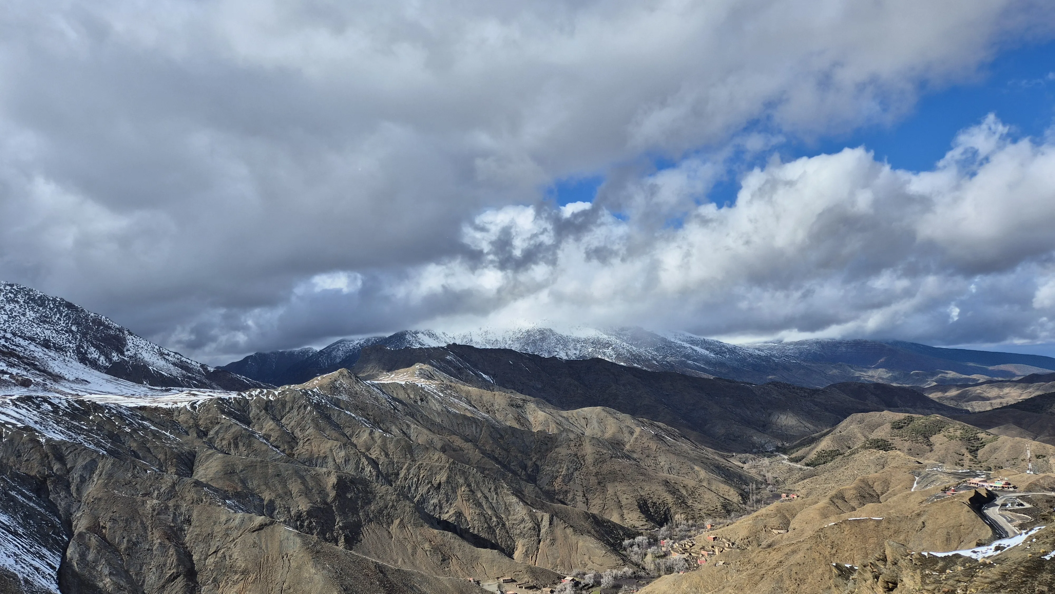 그러다 순간 차 안에서 자신도 모르게 숨을 멈출 수밖에 없었다. 저 멀리 북아프리카 최고봉인 투브칼(Toubkal, 4167m)이 먼 하늘 위에 실루엣처럼 걸려 있고, 그 아래로 붉은 대지가 끝없이 펼쳐지며 푸른 하늘과 경계를 이루고 있었다. 손에 잡힐 듯 선명하면서도 쉽게 다가설 수 없는 이 장엄한 풍경 앞에서 문득 ‘저 거대한 산맥이 혹시 하늘을 들고 있는 것은 아닐까’ 하는 생각이 들었다.