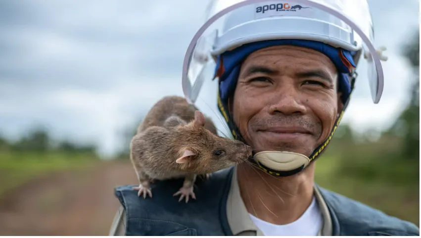 캄보디아의 지뢰밭에서 5년간 활동하며 100개가 넘는 폭발물을 찾아내 수많은 인명을 구한 아프리카 큰주머니쥐 ‘마가와’(Magawa)를 기리는 동상이 세워졌다. 지난 3일 캄보디아 시엠레아프에서는 ‘국제 지뢰 인식과 제거 활동 지원의 날’(4월 4일)을 하루 앞두고 마가와의 2.2m 높이 석상 제막식이 열렸다. 마가와는 공공 기념물로 기려진 세계 최초의 쥐로 기록될 전망이다.